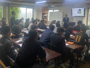 講習クラスは1日6時間半。インドネシアやベトナムらの実習生に囲まれて授業。